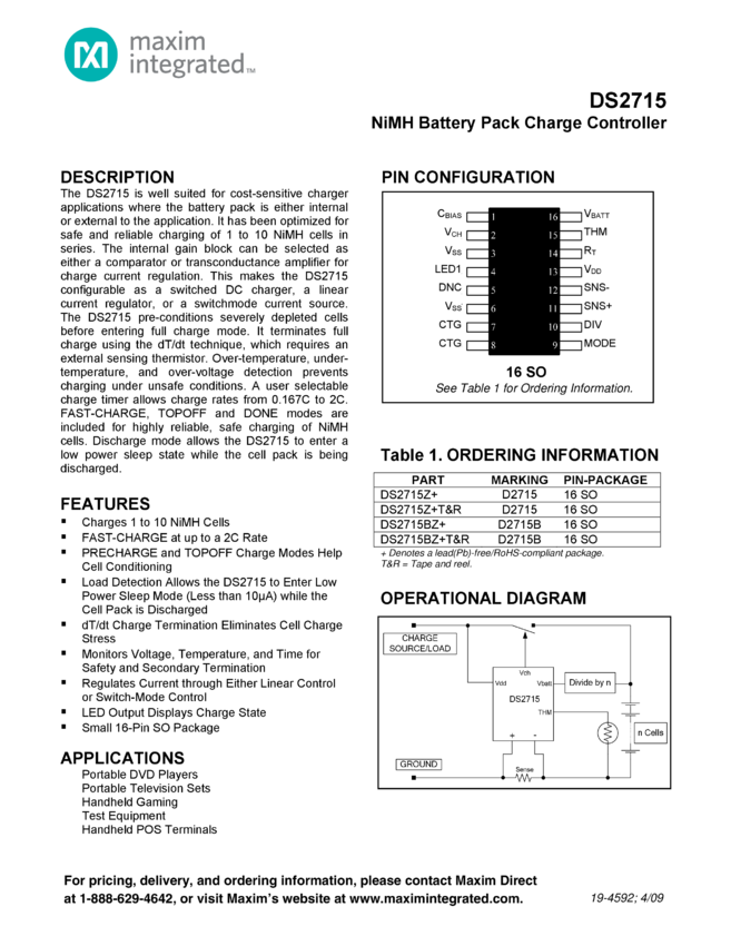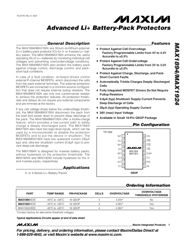 MAX1665S, MAX1665V, MAX1665X Lithium-Ion Battery Pack Protector