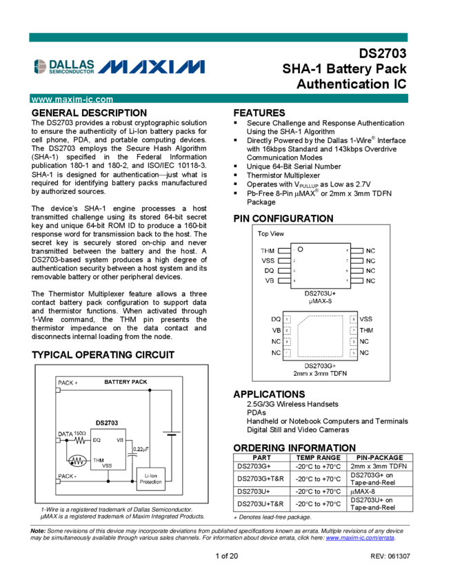MAX1906 Li+ Battery-Pack Protector with Integrated Fuse Driver