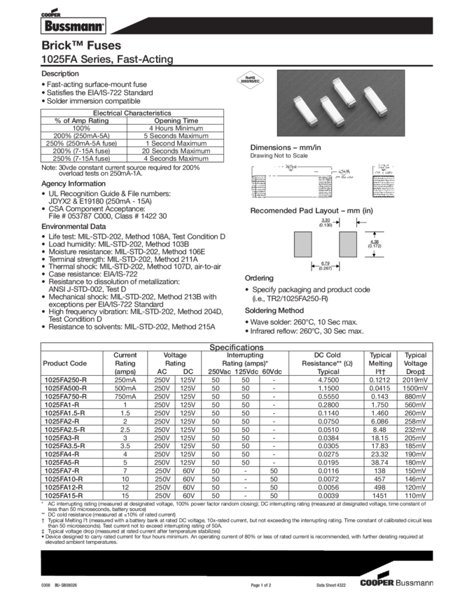 Fuse Chip 2A Fast 2-Pin Solder Pad Surface Mount T/R