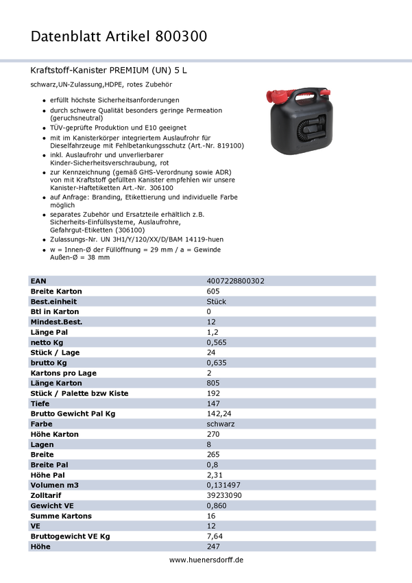 Hünersdorff 800300 Premium Kanister na paliwo 5 l tworzywo sztuczne