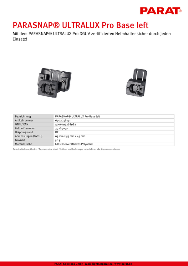 Uchwyt do hełmu Parat PARASNAP ULTRALUX PRO BASE 6902049151