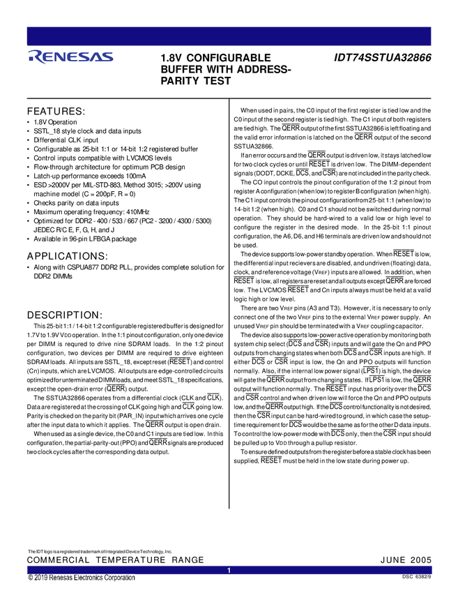 1.8 V 25-bit 1 : 1 or 14-bit 1 : 2 configurable registered buffer with parity for DDR2-800 RDIMM applications
