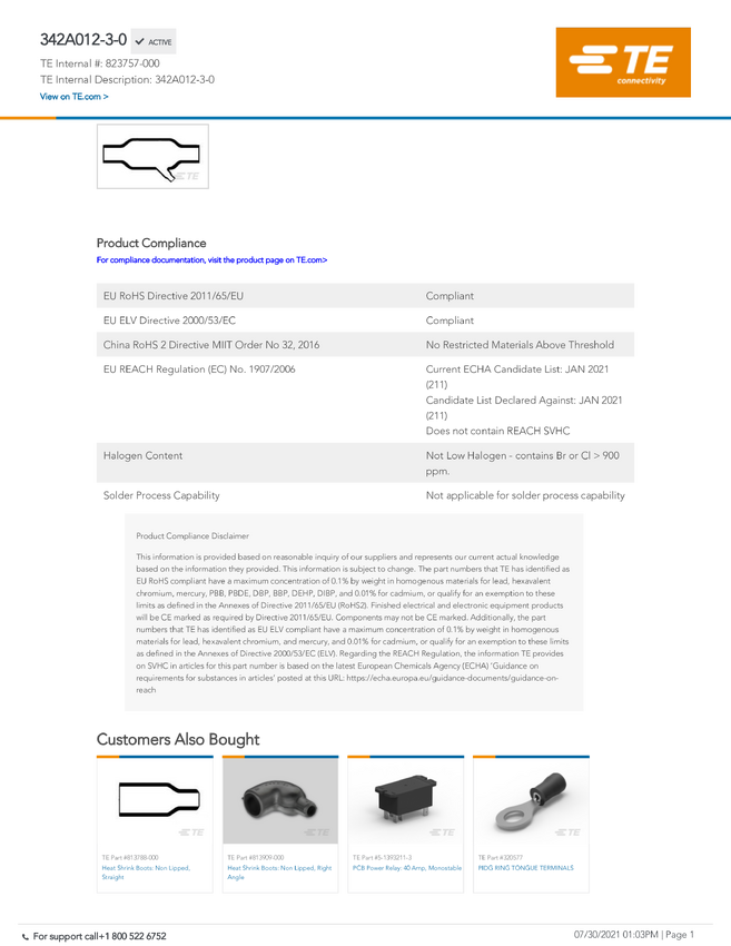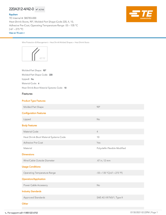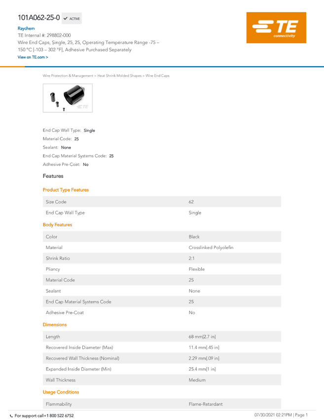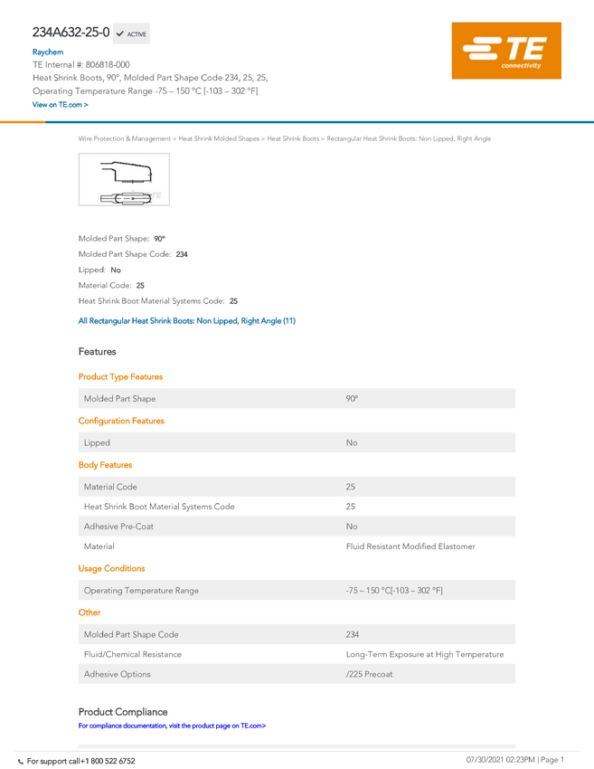 TE Connectivity TE RAY TFIT Poly Molded Parts 807480-000, 1 szt.