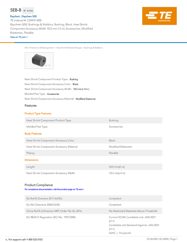 TE Connectivity TE RAY TFIT Poly Molded Parts CS9491-000, 1 szt.
