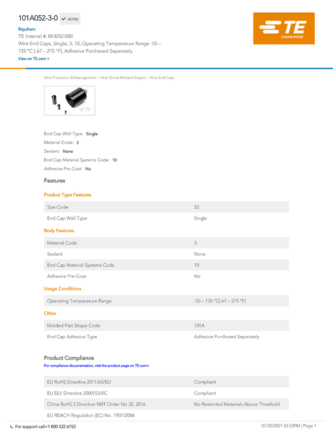 TE Connectivity TE RAY TFIT Poly Molded Parts 843052-000, 1 szt.