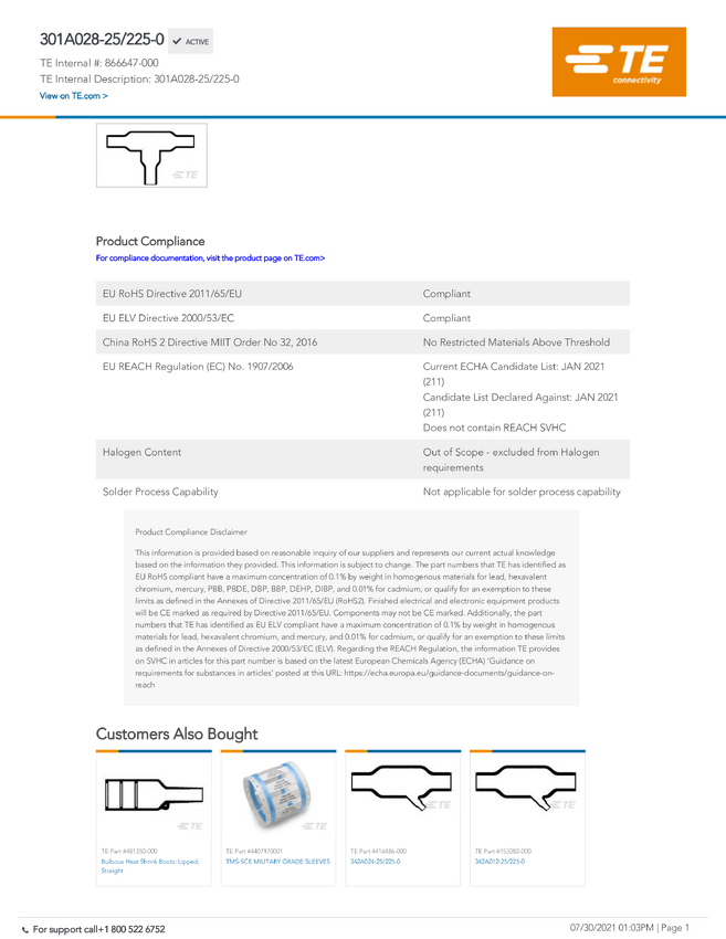 TE Connectivity TE RAY TFIT Poly Molded Parts 1 szt.