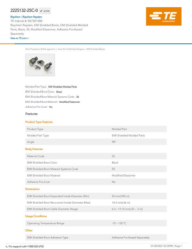 TE Connectivity TE RAY TFIT Poly Molded Parts EK7307-000, 1 szt.
