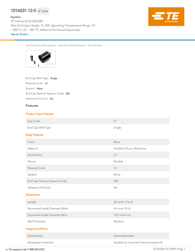 TE Connectivity TE RAY TFIT Poly Molded Parts 811353-000, 1 szt.