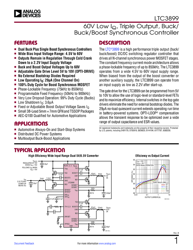 60V Low I, Triple Output, Buck/Buck/Boost Synchronous Controller with PassThru