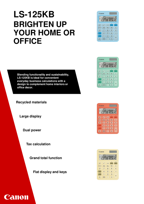 Kalkulator biurkowy LS-125KB pastelowy żółty 12 cyfr, zasilany energią słoneczną i baterią