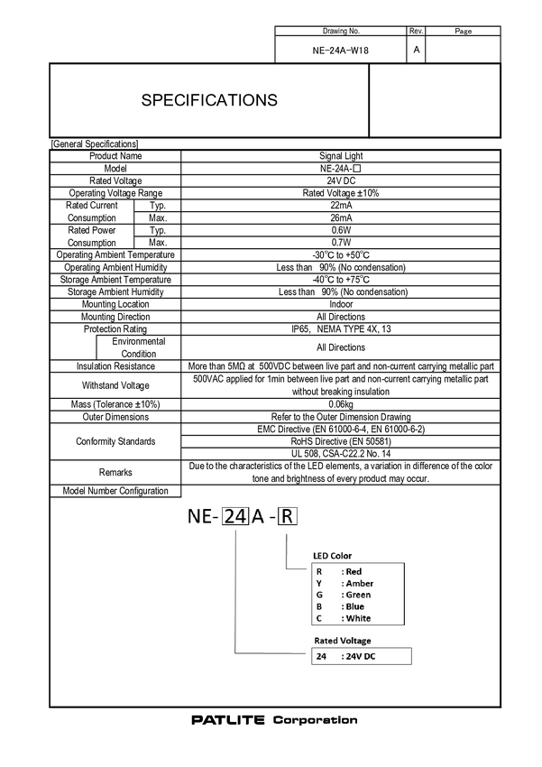 Sygnalizator świetlny Patlite NE-24A-Y pomarańczowy światło ciągłe 24 V/DC