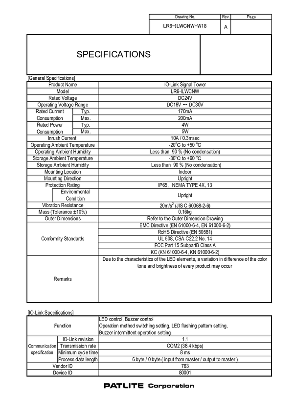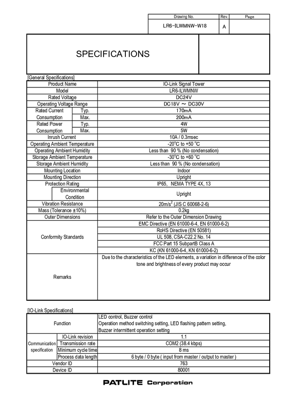 Element kolumny sygnalizacyjnej Patlite LR6-ILWMNW LR6-ILWMNW 1 szt.