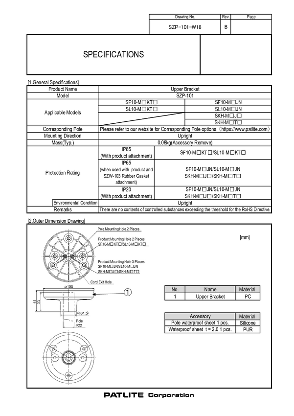 Sygnalizator świetlny Patlite SL08-M2KTB-R czerwony światło migające 100 V/AC, 240 V/AC 86 dB