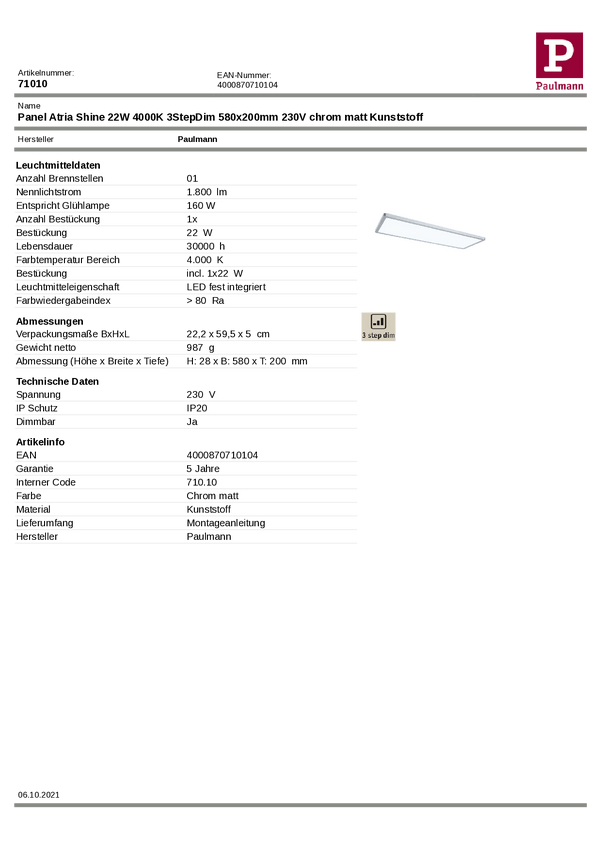 Lampa sufitowa LED Paulmann Atria Shine 71006 22 W 2800 lm