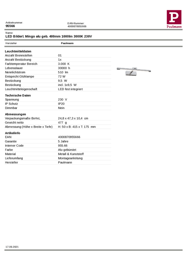 Lampa LED do oświetlenia obrazu Paulmann Mingo 95566 9.5 W 1000 lm aluminiowy