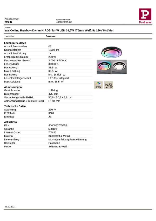 Lampa sufitowa LED Paulmann Rainbow 70545 19.25 W 1500 lm czarny, biały