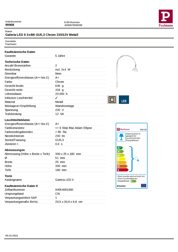 System oświetlenia wiaty garażowej Park + Light Paulmann Bimea 94585, 1 szt.