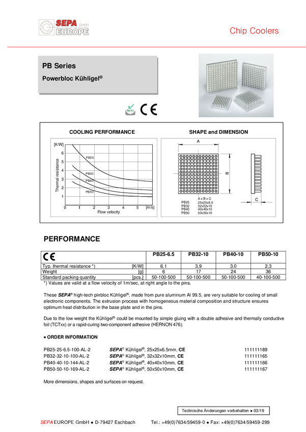Radiator SEPA PB40-40-10-144-AL-2, (D x S x W) 40 x 40 x 10 mm