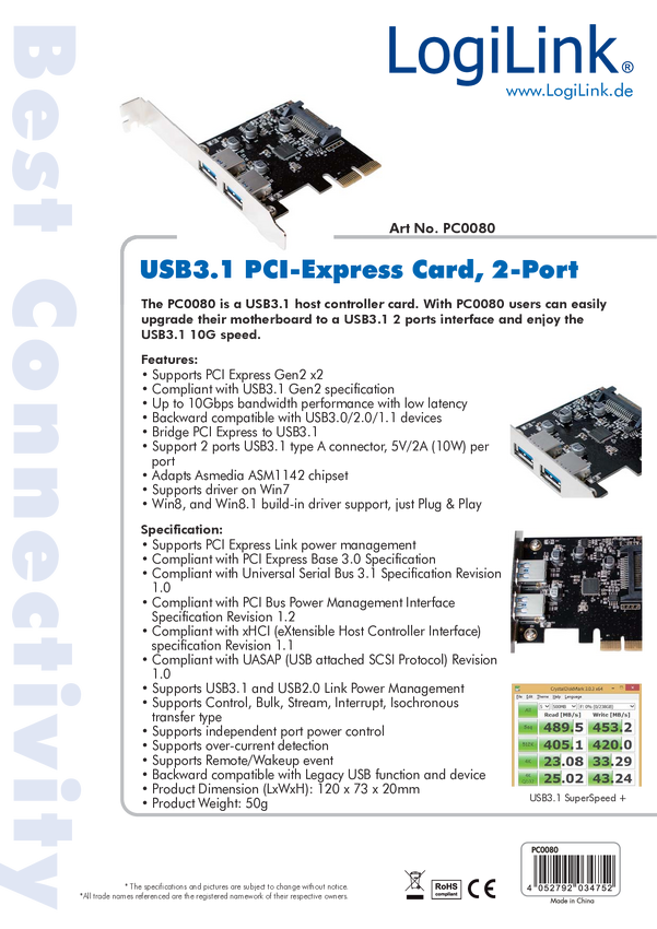 Karta LogiLink® PCI Express, 2x USB 3.1