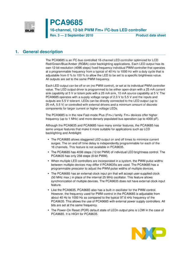 16-channel, 12-bit PWM Fm+ I2C-bus LED controller