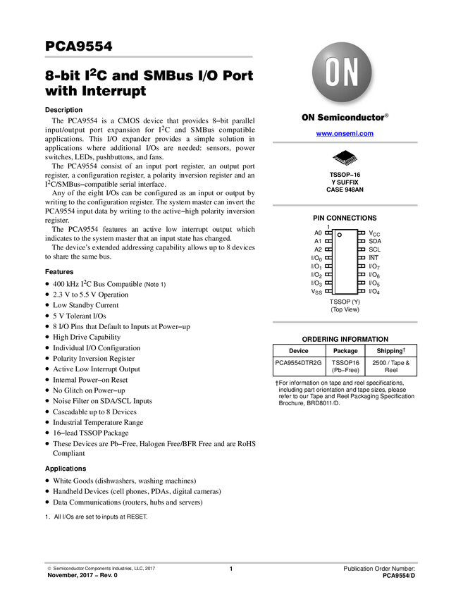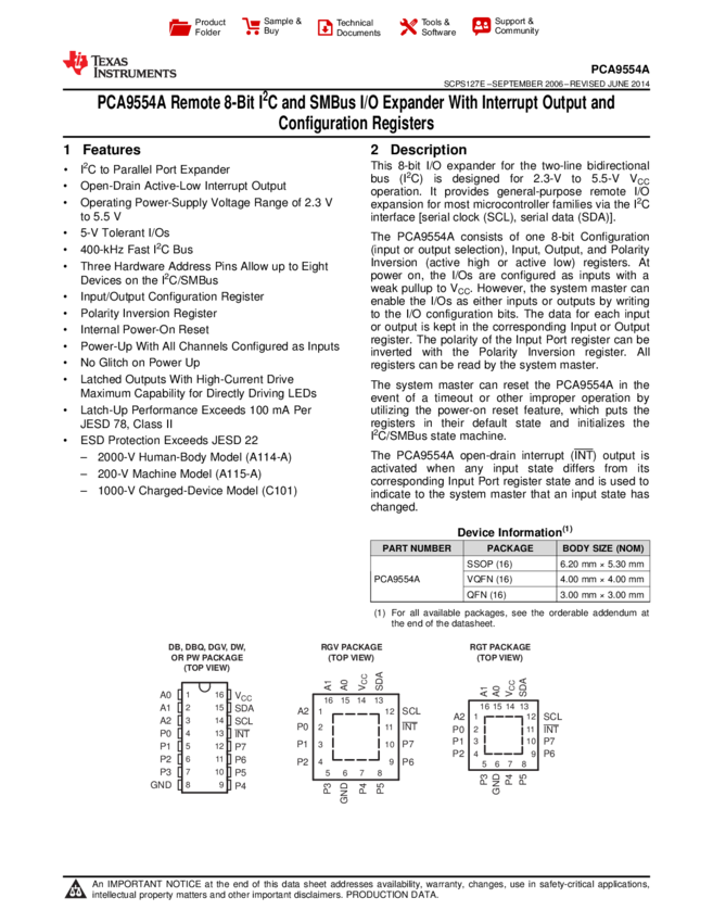 SMBus I/O Port with Interrupt, 8-bit I2C