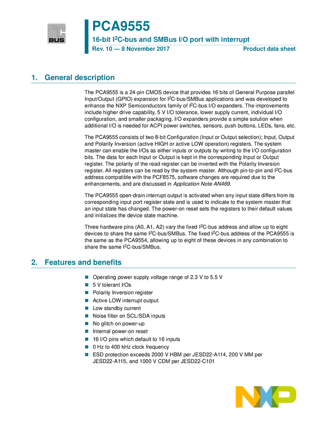 16-bit I2C-bus and SMBus I/O port with interrupt