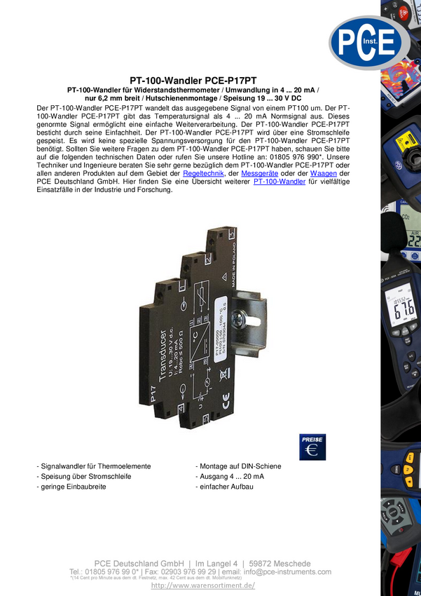 Konwerter PT-100 PCE Instruments PCE-P17PT-1