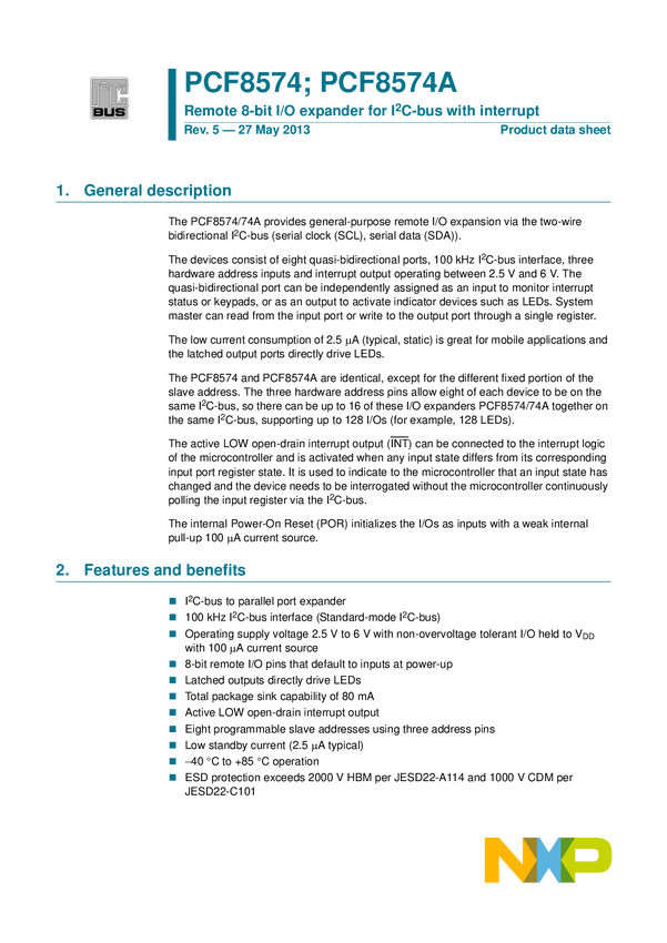 Remote 8-bit I/O expander for I2C-bus with interrupt