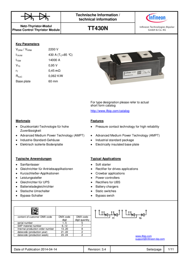 Thyristor PCT Module 1.8KV 17KA 7-Pin PB60AT-1 Tray