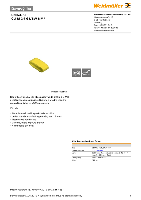 Oznacznik kablowy Weidmüller CLI M 2-4 GE/SW Ö MP 1733651695, PCW, 10 do 317 mm, 100 szt.