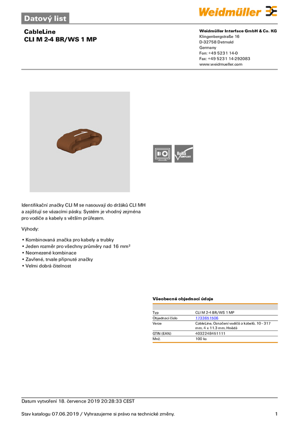 Oznacznik kablowy Weidmüller CLI M 2-4 BR/WS 1 MP 1733651506, PCW, 10 do 317 mm, 100 szt.
