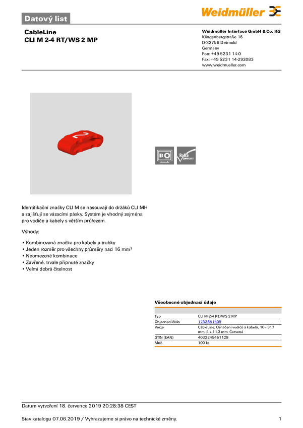 Oznacznik kablowy Weidmüller CLI M 2-4 RT/SW 2 MP 1733651509, PCW, 10 do 317 mm, 100 szt.