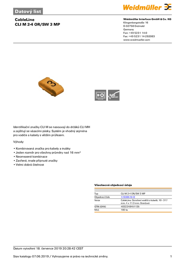 Oznacznik kablowy Weidmüller CLI M 2-4 OR/SW 3 MP 1733651512, PCW, 10 do 317 mm, 100 szt.