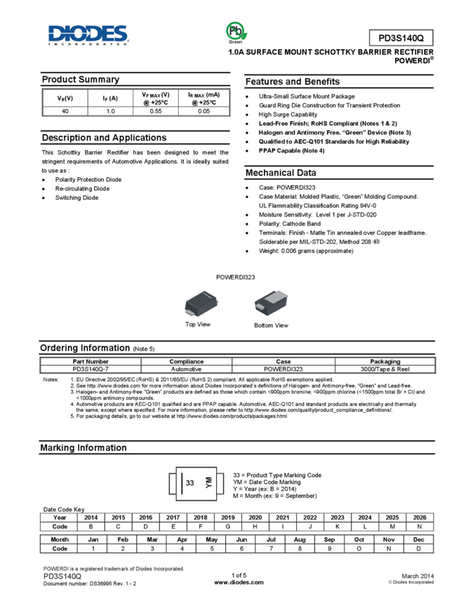 SURFACE MOUNT SCHOTTKY BARRIER DIODE
