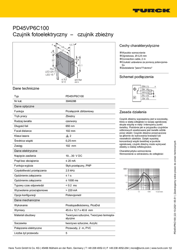 Czujnik światła Turck PD45VP6C100 3046288 1 szt.