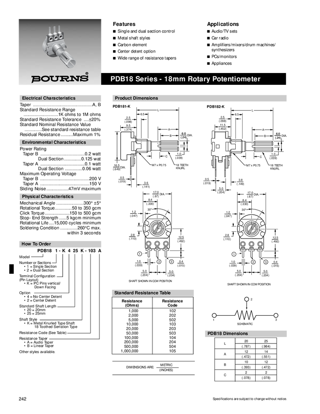 POTENCJOMETR OBROTOWY 18 MM do druku,20/25mm audio/linear