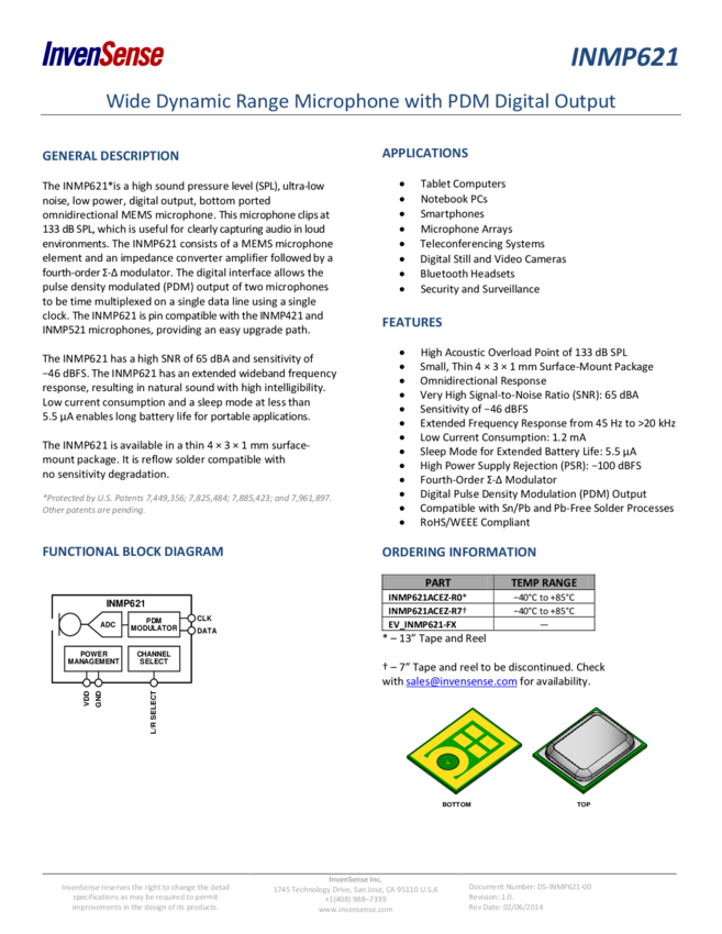 ADMP621: Wide Dynamic Range Microphone with PDM Digital Output