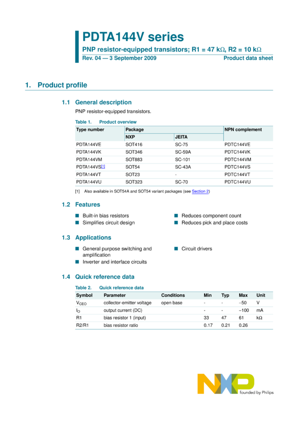 PNP resistor-equipped transistors; R1 = 47 kOhm, R2 = 10 kOhm