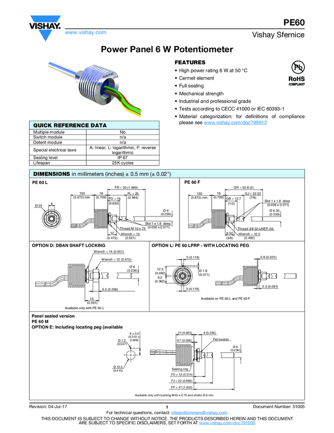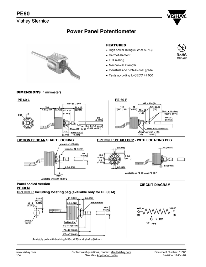 Potencjometr cermetowy; Bushing; moc. 6W średnica 25 mm; gł. 18mm; ośka 6mm; dł. 25mm ( możemy dostarczyć z ośką 16mm; możliwe rezystancje 4,7 ; 10; 100; 470 ohm
