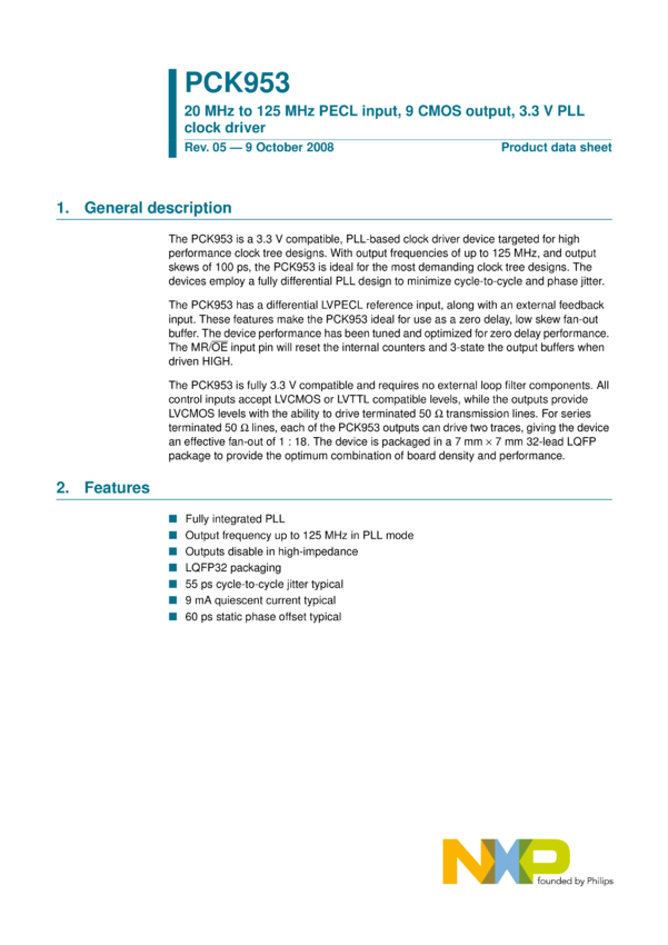 20 MHz to 125 MHz PECL input, 9 CMOS output, 3.3 V PLL clock driver