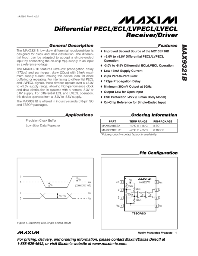 MAX9321B Differential PECL/ECL/LVPECL/LVECL Receiver/Driver