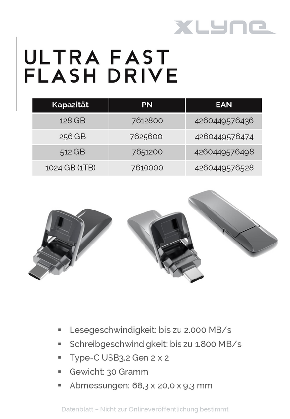 Xlyne 7625600 Pendrive USB 256 GB szary 7625600 USB-C® (USB 3.2 Gen 2)