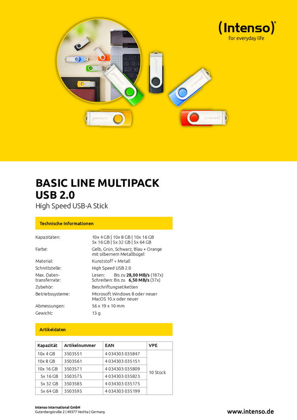 Intenso USB-Stick 5er Pack Basic Line 5 x 32 GB Pendrive USB 32 GB żółty, zielony, niebieski, pomarańczowy, czarny 35035