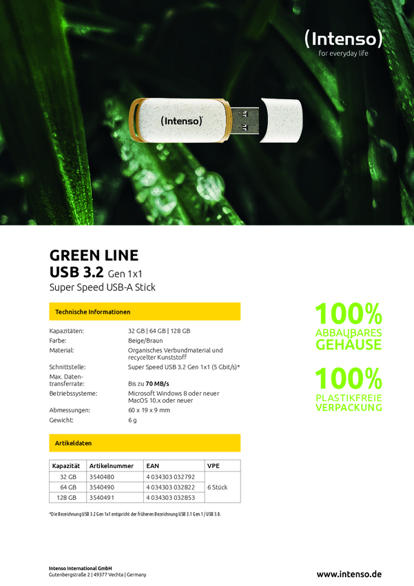 Intenso Green Line Pendrive USB 64 GB beżowy, brązowy 3540490 USB 3.2 Gen 1