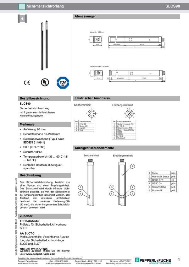 Pepperl+Fuchs Kurtyna bezpieczeństwa SLCS90-1500-R 24 V/DC