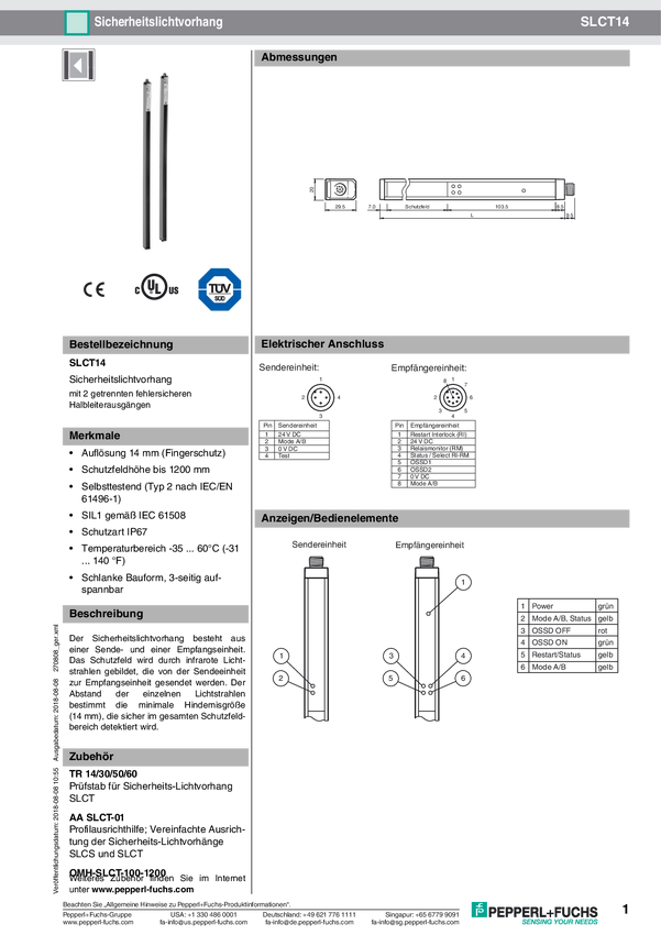 Pepperl+Fuchs Kurtyna bezpieczeństwa SLCS30-1400-R 24 V/DC