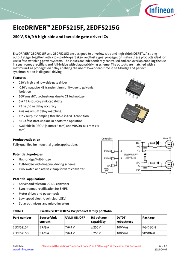 Fast, robust, dual-channel, high side isolated gate driver with accurate and stable timing and high current output Designed to drive low-side and high-side MOSFETs, a strong output stage, together with a low part-to-part skew and fast signal propagation makes these products ideal for use in fast-switching power systems. The outputs are matched with a maximum 4 ns propagation delay enabling the use of lower dead-time in half-bridge and perfect synchronization in diagonal driving.