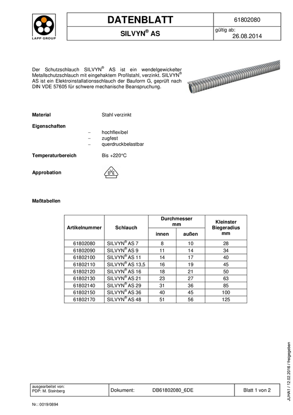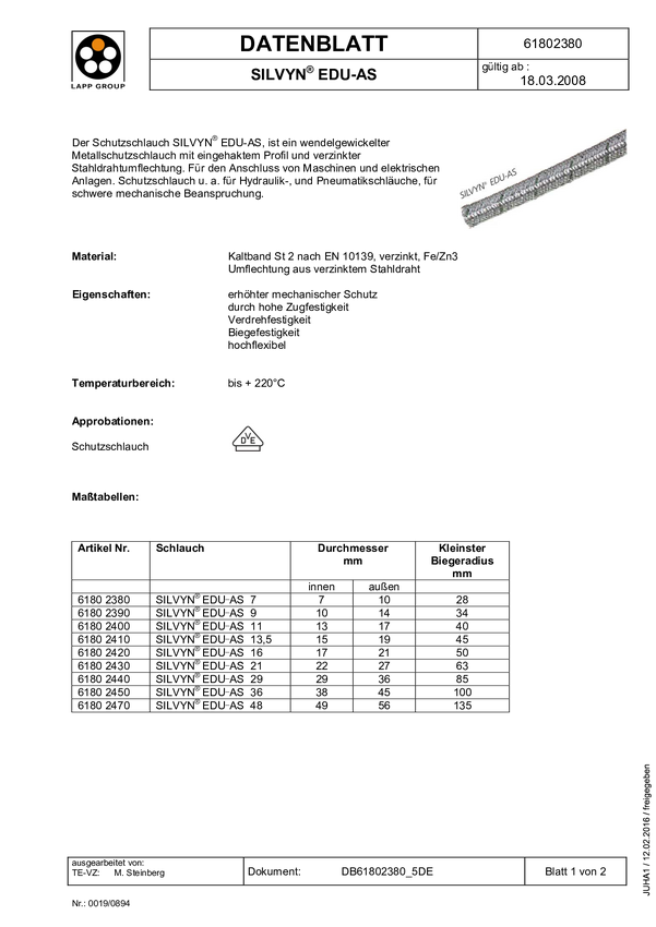 LAPP 61802440 SILVYN® EDU-AS 29/29x36 Peszel metalowy srebrny 29 mm 25 m