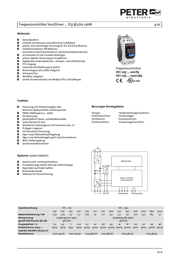 Przemiennik częstotliwości Peter Electronic VD i 150/E3 1.5 kW 1-fazowy 230 V
