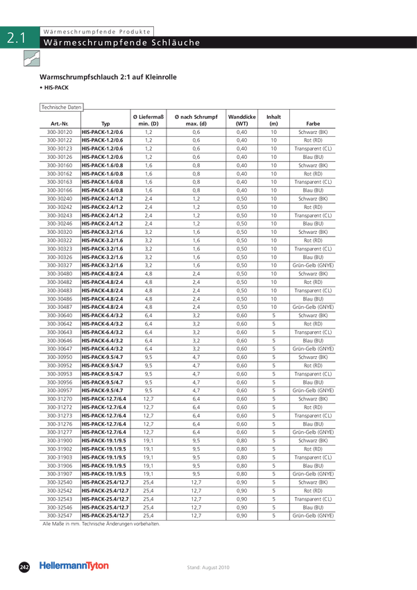 Rurka termokurczliwa bez kleju HellermannTyton HIS-3/16-PEX- H&B 300-30480, 2:1, od 4.80 mm do 2.40 mm, 10 m